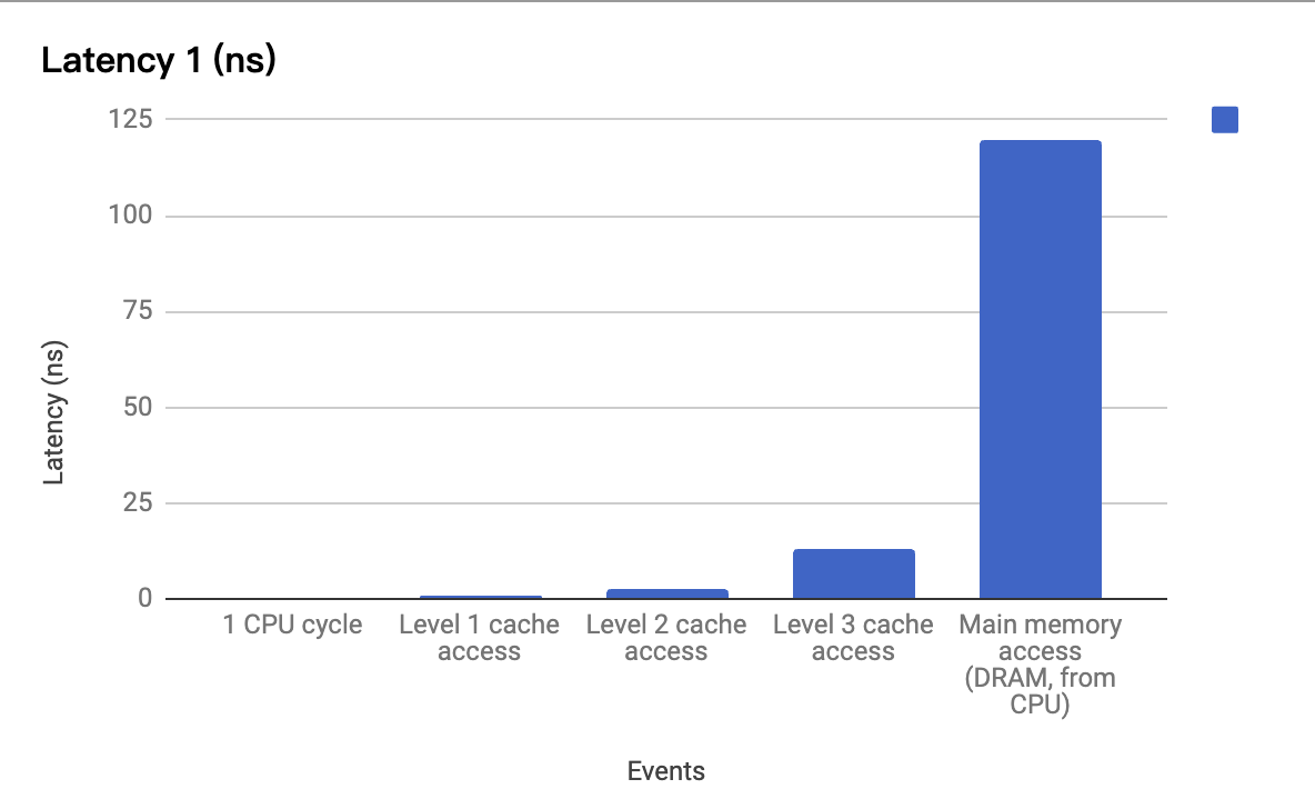 Main memory reference 100 ns 20x L2 cache, 200x L1 cache
